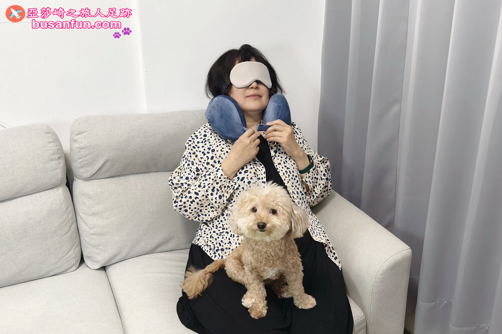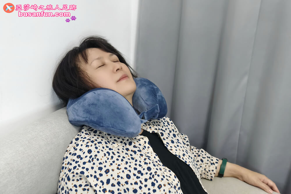 尤其是建議大家搭車、搭船想滑手機的時候,戴一下頸枕真的會感覺”很不晃”。